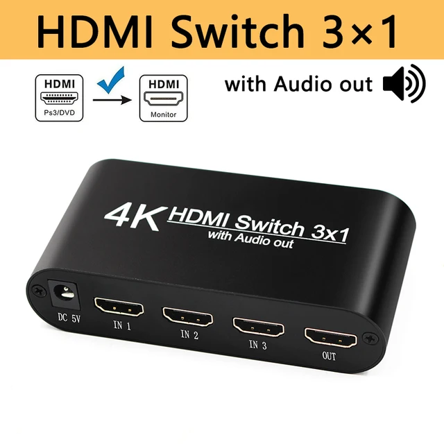 HDMI Switch Audio Extractor 3x1 with 4K Adapter 3 in 1 out Switcher SPDIF 3.5 jack Optical Toslink Splitter Remote for HDTV PS4