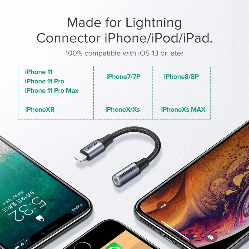 Check out our sale items Ugreen MFi Lightning to 3.5mm Jack AUX Cable for iPhone 11 Pro X XS XR 8 7 3.5mm Lightning 3.5 Head and enjoy pardon conventional Shipping on